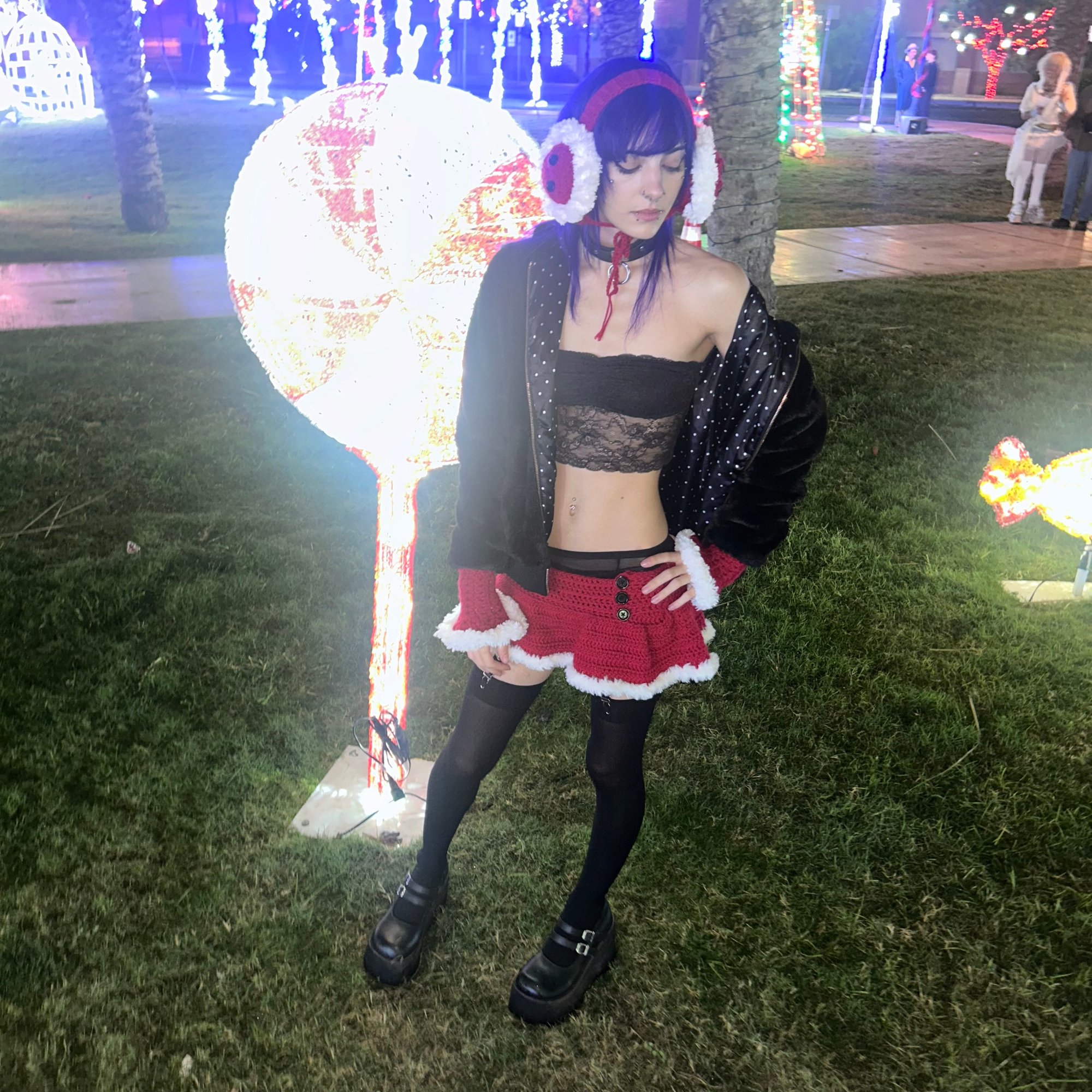 Crochet set includes mini skirt, arm warmers, and ear muffs!!