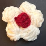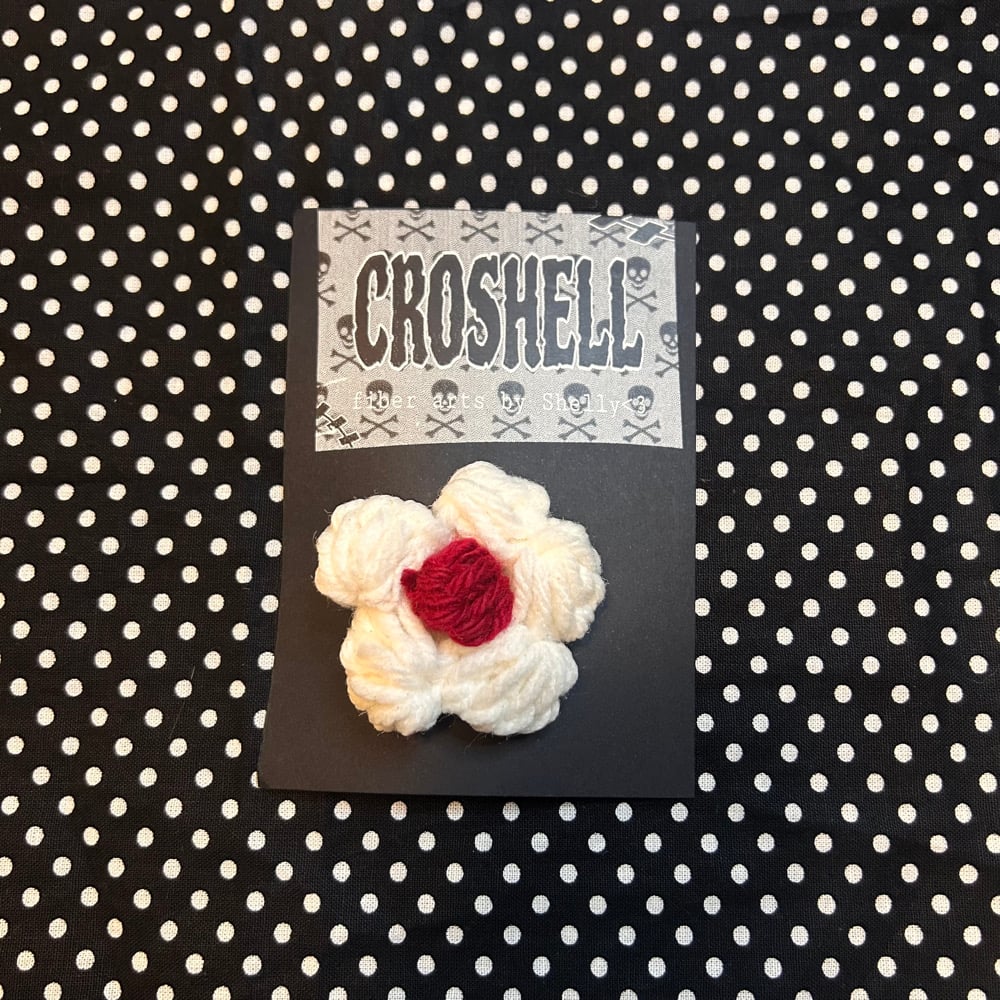 Handmade crochet hair clip of whip cream dollop with a cherry on top ^_^